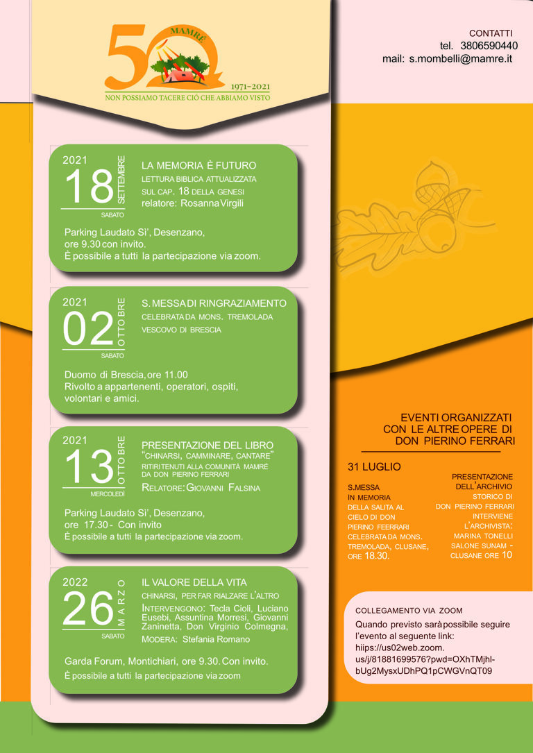 Qui è possibile visionare tutti gli eventi realizzati per celebrare i 50 anni di Mamré.