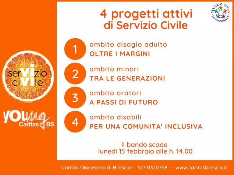 Caritas propone 49 posti in servizi educativi e di assistenza in quattro ambiti: