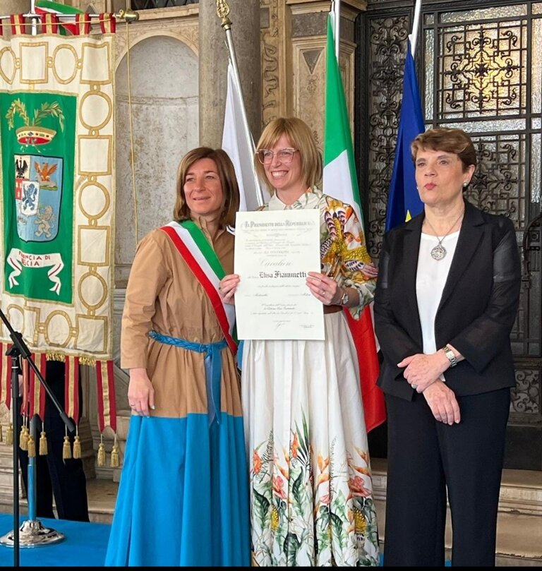 (Nella foto ‘a tre’ Elisa Fiammetti tra il prefetto di Brescia Maria Rosaria Laganà e il sindaco di Ospitaletto Laura Trecani)